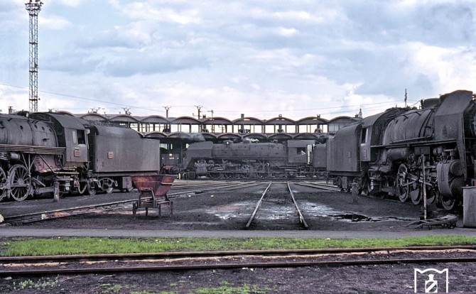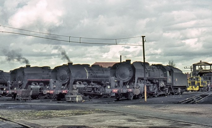 Das Bild zeigt einen Blick in das Depot Dole zwischen Dijon und Besacon im Jahr 1964. Copyright: Theodore Shrady / Slg. Eisenbahnstiftung