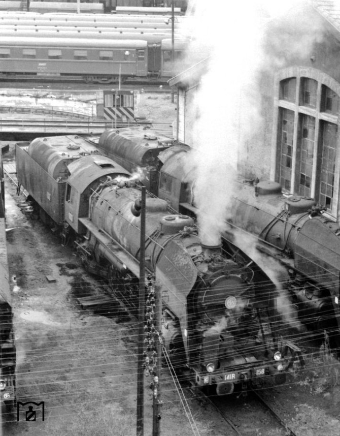 Bild unten: Ein zweiter Blick in das BW Dole lässt erkennen wie dominant die Präsenz der Reihe 141.R war. Copyright: Theodore Shrady / Slg. Eisenbahnstiftung.