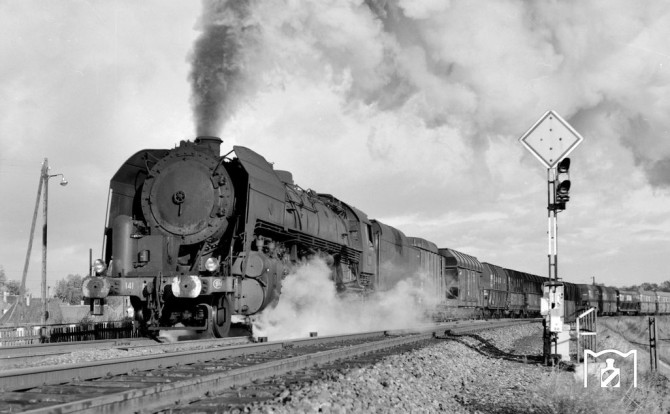 Bild unten: Nicht nur vor Reisezügen, sondern auch vor schweren Kokszügen kamen die Mikados zum Einsatz. Hier müht sich 141.R.173 bei Strasbourg. Copyright: Jörg Schulze / Slg. Eisenbahnstiftung