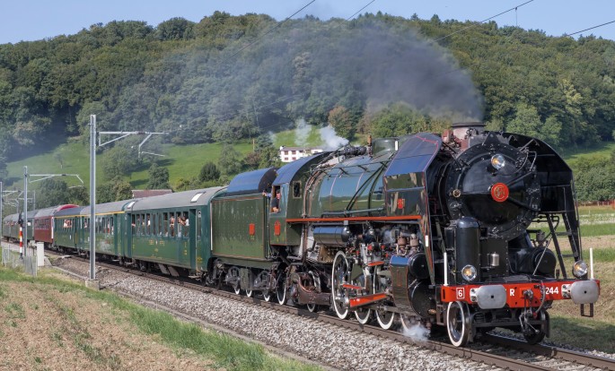 Die 141.R.1244 vor einem Sonderzug in der Schweiz. Copyright: Verein Mikado 1244 Brugg